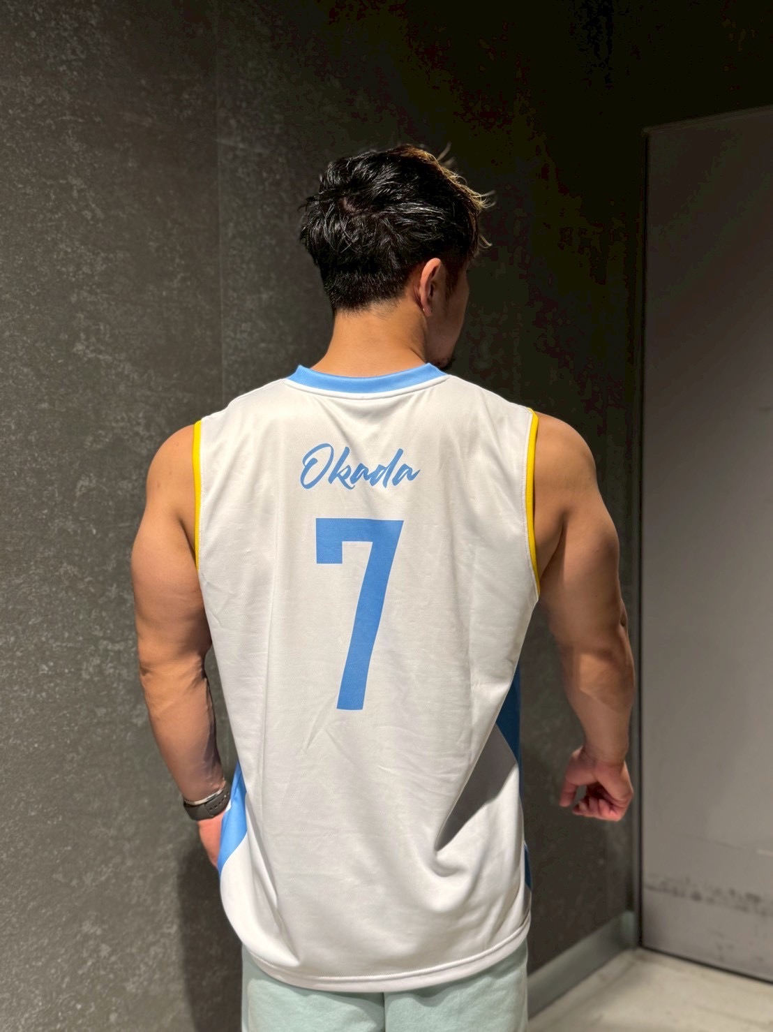 プライベートでもお洒落な岡田涼平とデザイン構成を練り、バスケットボールシャツボディを採用してスポーツやfitness、普段着まで幅広く使い勝手も◎