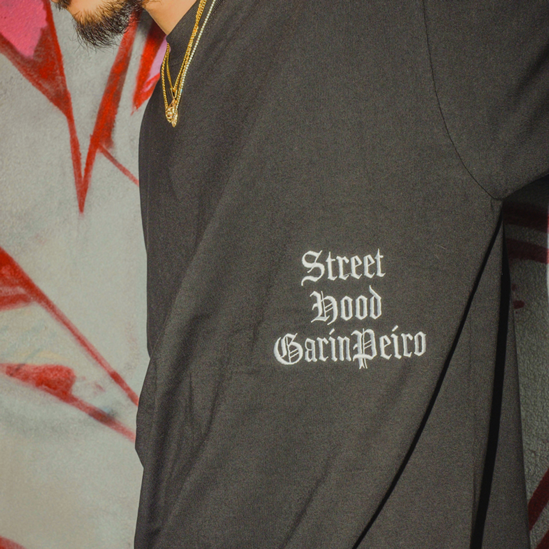 ・STREET HOODの文字を脇腹に刺繍。