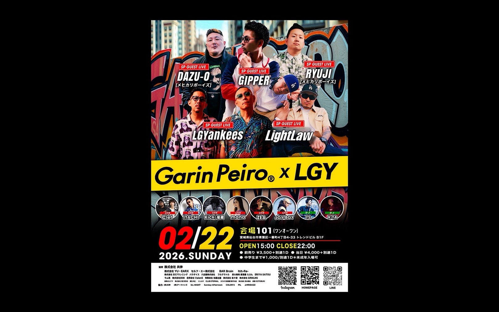 2026/02/22 『GarinPeiro × LGY in 仙台@101』 前売りチケット3,500Yen -